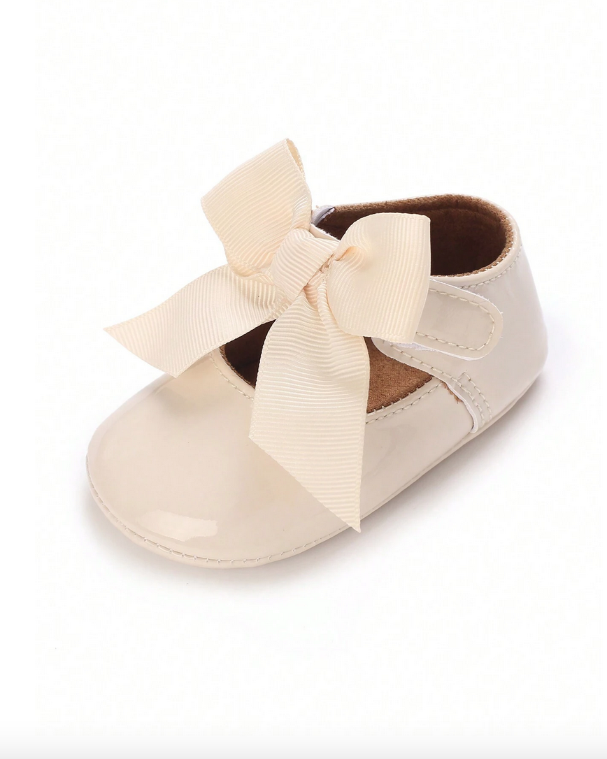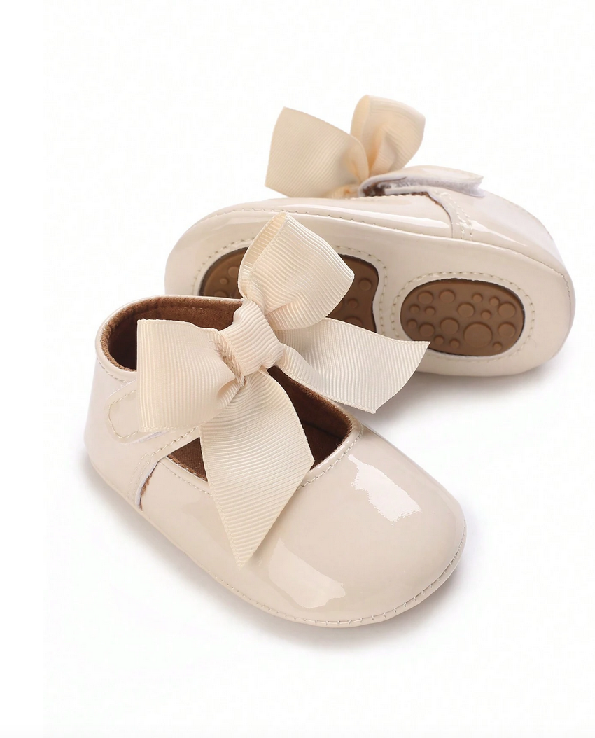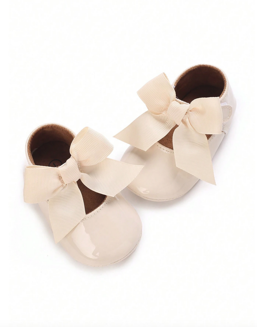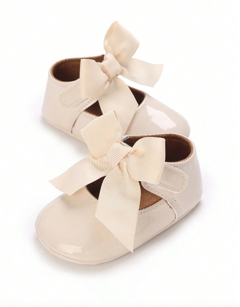 Κομψά Βρεφικά Παπουτσάκια με Φιόγκο – Μπεζ Λουστραρισμένα