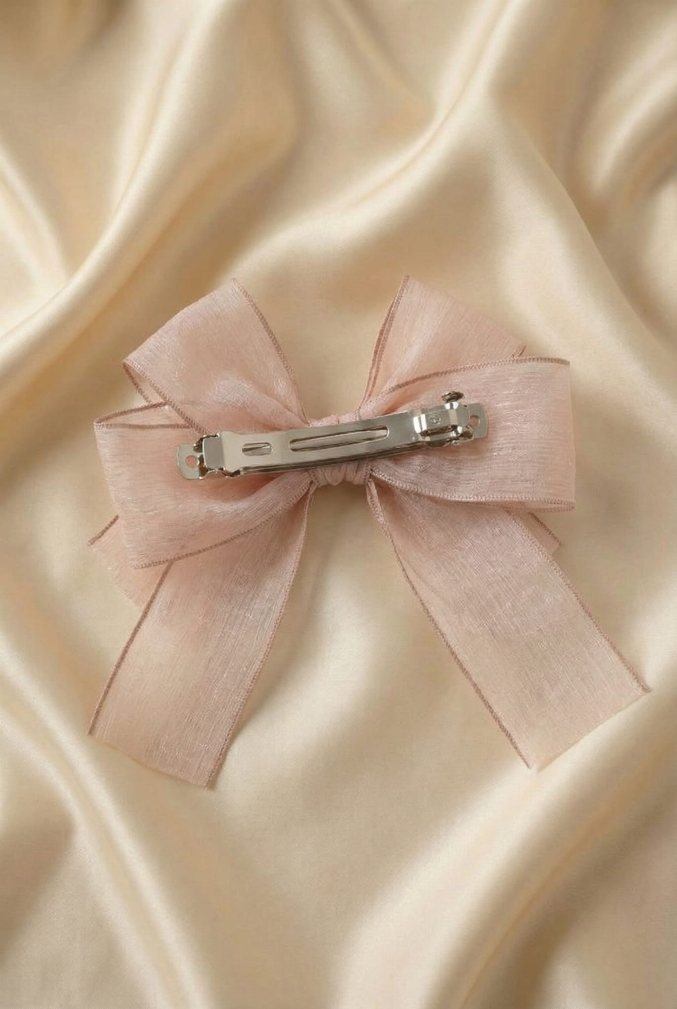 Αυτό το όμορφο και διακριτικό τσιμπιδάκι σε σχήμα φιόγκου είναι το τέλειο αξεσουάρ για κάθε μικρή δεσποινίδα που θέλει να ξεχωρίσει σε επίσημες εκδηλώσεις. Κατασκευασμένο από απαλό, γυαλιστερό ύφασμα σε παστέλ ροζ απόχρωση, αποπνέει κομψότητα και κοριτσίσιο στιλ. Με πλάτος 13 εκ., τραβάει τα βλέμματα και αποτελεί εντυπωσιακή προσθήκη σε κάθε χτένισμα.